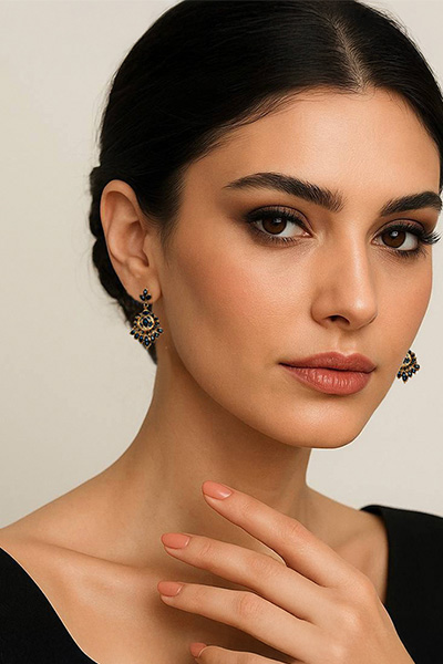 Blue Sapphires are nestled throughout this design. The Earrings are created in Sterling Silver with a gold overlay. They have a post back. The Earrings are created in Turkey.
